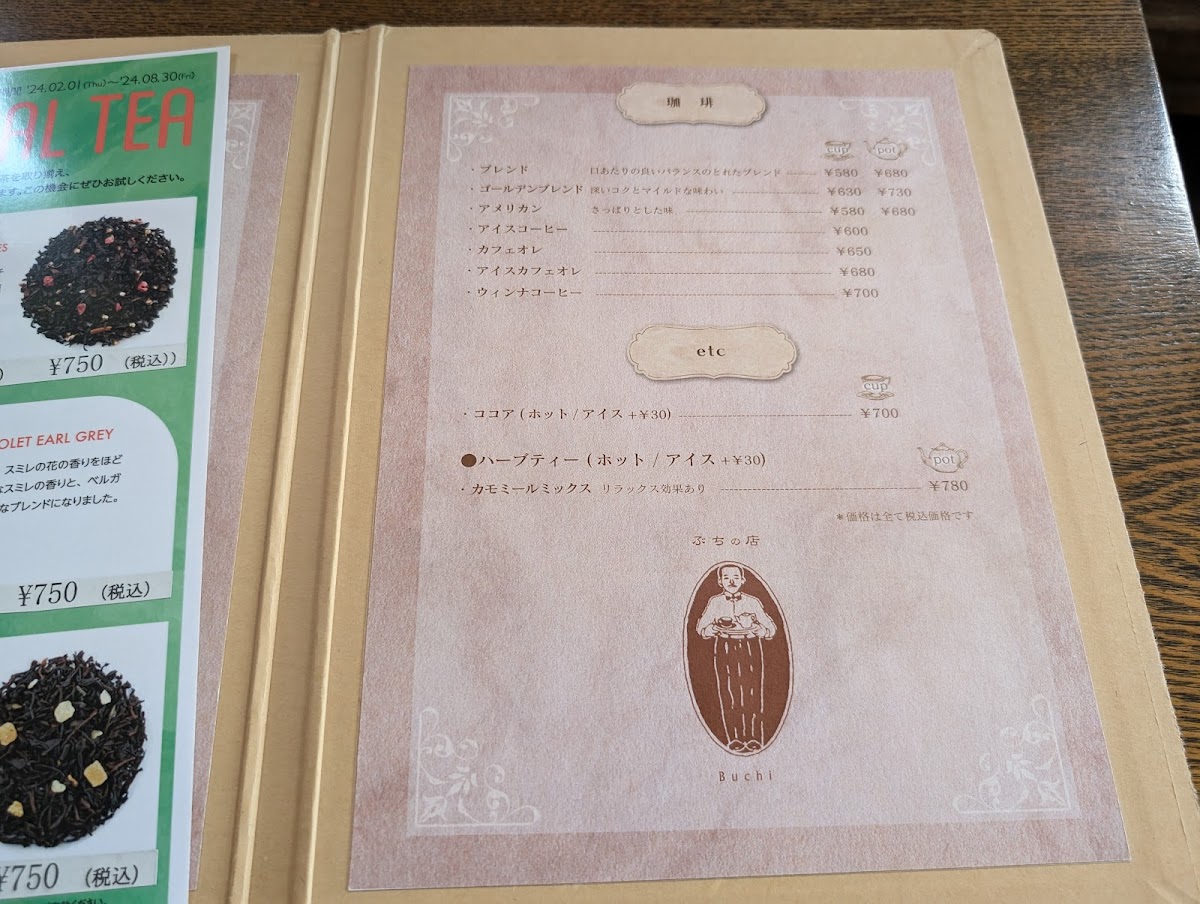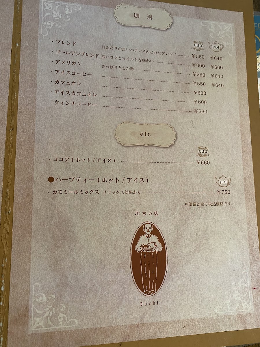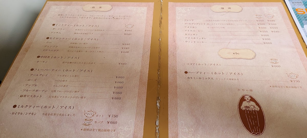 The menu at Tea Buchi offers a delightful variety of teas and cakes, perfect for those looking to indulge in a cozy, flavorful experience. The standout tea selection includes the ポットサービスの紅茶, a pot of aromatic tea served to perfection, making it a lovely companion to any of the desserts. For those with a sweet tooth, the cake options are simply irresistible. The 抹茶と木苺のシフォンケーキ combines the rich flavor of matcha with the tartness of raspberries, while the チョコモンブラン offers a decadent chocolate chestnut experience. If you're in the mood for something creamy, the レアチーズケーキと紅茶 is a satisfying pairing, while the イチゴショートケーキ delivers a classic, light strawberry flavor. Seasonal offerings like the 季節のシフォンケーキ add variety and freshness to the menu, often highlighting local ingredients. For a more unique twist, the Tarta de Fresa Salvaje presents wild strawberries in a tangy tart, and the ハニーティー offers a soothing, sweet honey tea to complement any cake. If you're seeking comforting flavors, the バナナシフォンケーキ and くるみのシフォンケーキ provide a homely, nutty sweetness, while the かぼちゃプリン offers a delightful pumpkin custard. Whether you prefer a classic or a more adventurous treat, Tea Buchi’s menu offers something to satisfy every palate, all at a welcoming and relaxed atmosphere.